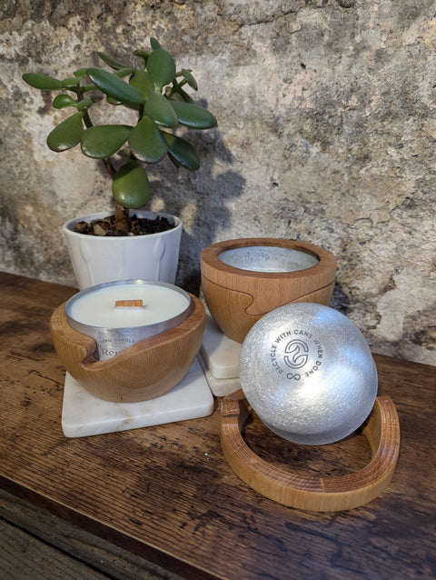 Premium wood containers that hold 100% recyclable candle refills.How we started on this journey